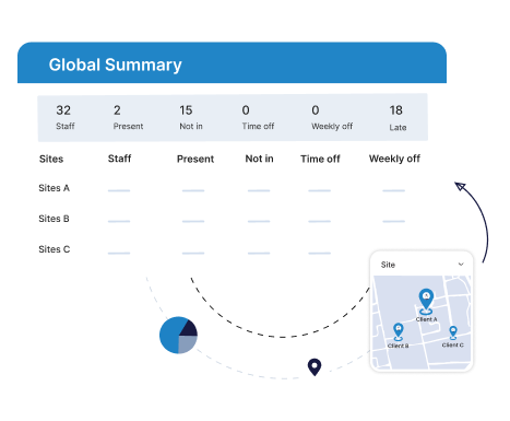 See who’s present, late or missing across every client site from one dashboard. Filter by site, contractor or team to track daily performance and attendance